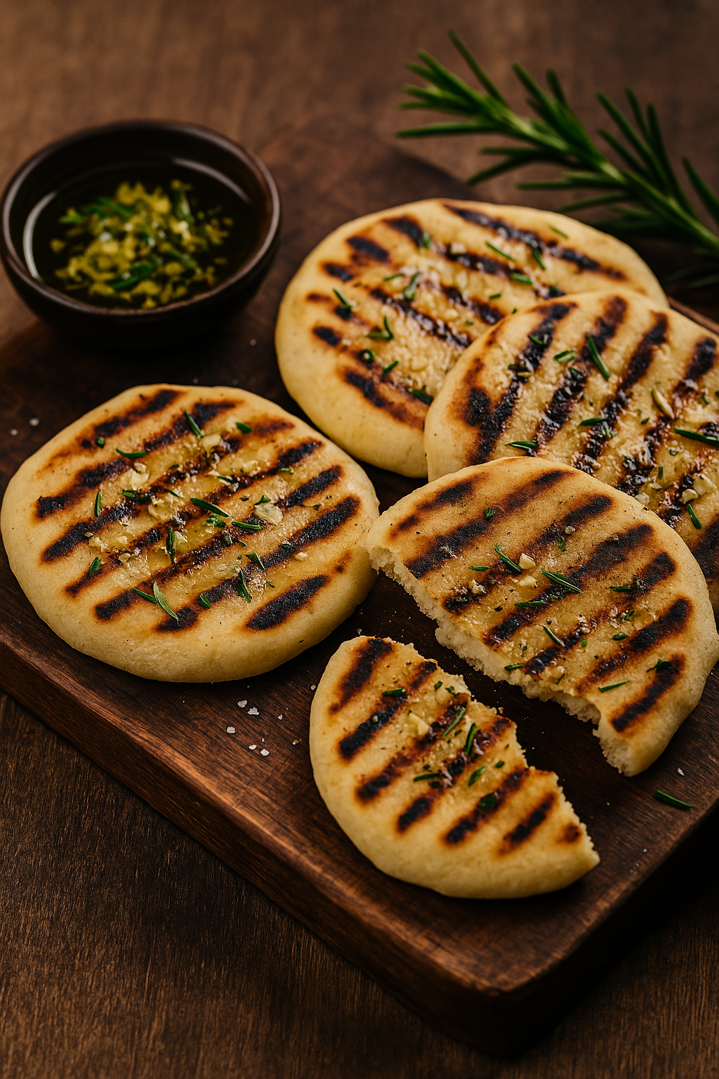 Pan de Parrilla – Gegrilltes Fladenbrot mit Knoblauchöl & Rosmarin
